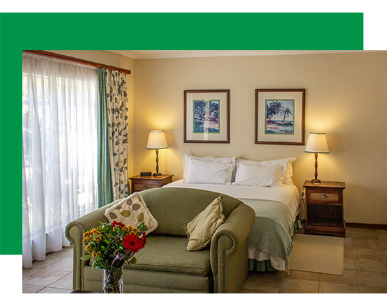 The Fern and Palm suites overlook the main garden and swimming pool, where you can relax in the sun or take a refreshing swim.
