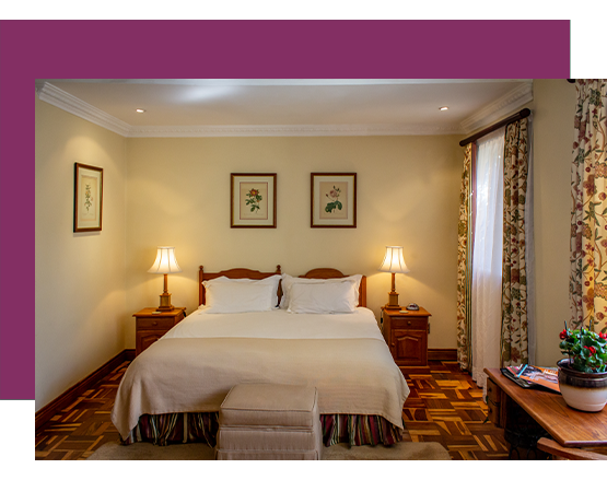 The Victoria Suite (pictured left) overlooks the front lawns and you can sit and enjoy the gentle cascade of water from the fountain or the fragrances from the adjoining rose garden.